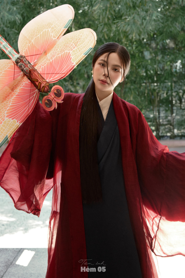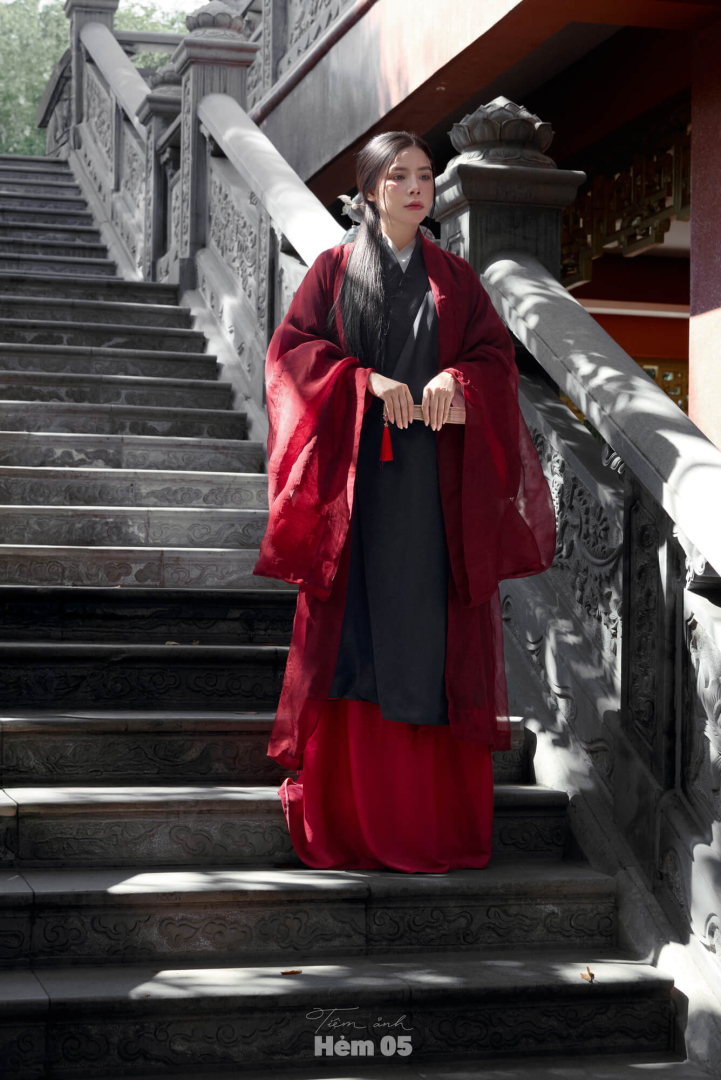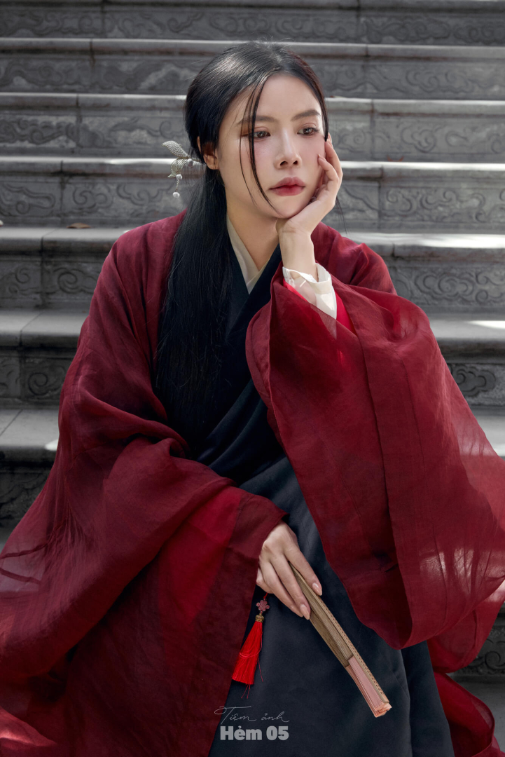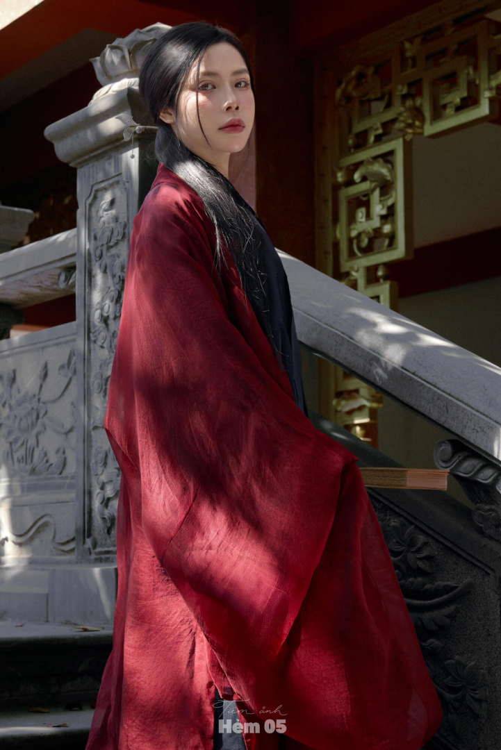 Đối Khâm Voan Đỏ Khoác Giao Lĩnh Mực